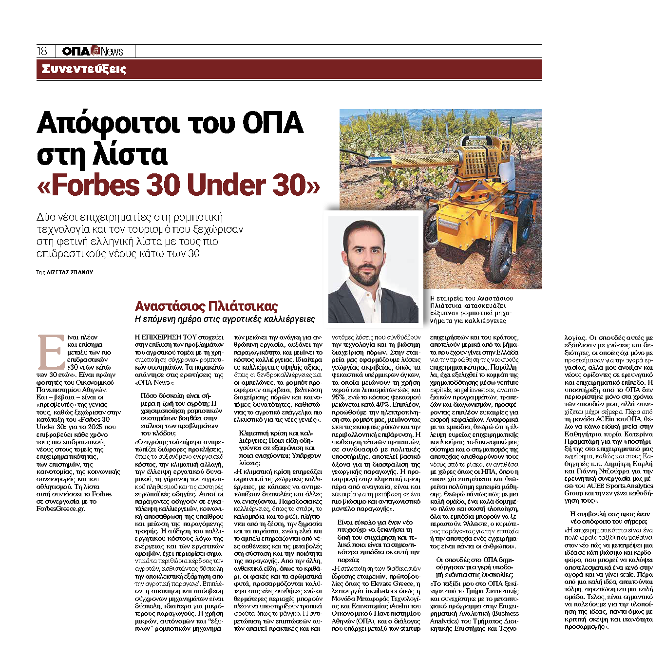 9/1/2025: Απόφοιτος του Τμήματος Στατιστικής στην λίστα Forbes: "30 under 30"