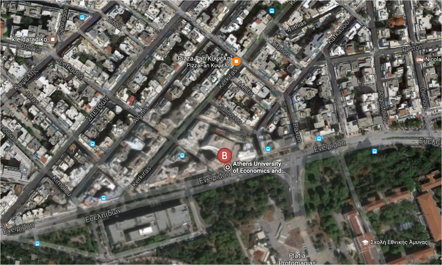 the Postgraduate Studies Building is located at 47A Evelpidon str and 33 Lefkados str, about 500m (or 10 minutes walking distance) from the central building.